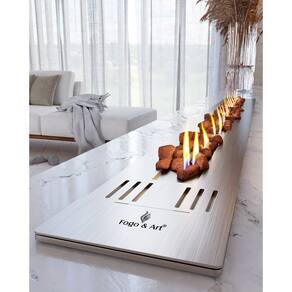 • Tamanho: 100 cm (c) x 15 cm (a) x 15 cm (l); • Queimador linear: 77 cm | 1 linha de fogo; • Área de aquecimento: 60 m²- Considerando pé direito de até 2.80m; • Consumo de gás: 480 g/h; • Peso: 12 kg; • Acabamento: inox escovado; • Material: inox 304; • Acendimento: manual com faísca elétrica (igual a um forno a gás); • Dispositivo de Segurança: Termopar - Sistema que corta o gás na ausência do fogo, semelhante a um forno a gás; • Voltagem: bivolt; • Ambiente para uso: interno - protegido do sol e intempéries; • Regulagem de chama: 5 níveis de altura; • Pedras vulcânicas inclusas para decoração; • Instalação: Uso embutido (semelhante a um cooktop); • Chaminé: Recomendado somente quando o tamanho da lareira não estiver de acordo com tamanho do ambiente ; • Cheiro: Toda lareira a gás, a álcool ou a lenha possui chama real e por consequência um cheiro característico. A lareira a gás quando instalada corretamente, ao ser acesa irá gerar um cheiro leve que não irá incomodar; • Pressão de gás: Baixa pressão 2kg; • Tubulação de gás: Mínimo de ½” (polegada), deixar rosca macho no interior do nicho; • Tipo de gás: GN ou GLP – informar no ato da compra; Observação: O gás GLP apresenta uma chama com base azulada e pontas amareladas. Já o gás GN, isto é, o natural, apresenta uma chama completamente azul; • Nicho: Instalar em granito ou alvenaria, caso utilize mármore, consulte o seu marmorista para a escolha da pedra ser resistente ao calor. NUNCA utilize MDF e não recomendamos madeira mesmo de lei ou dormente. A chama da lareira é real. Acima da lareira deve ter uma área livre de no mínimo 60cm de altura para ventilação; • Manual: Fale com um especialista e receba o manual completo de instalação. Nos envie seu projeto para receber atendimento personalizado e prevenir imprevistos; • Litoral: Pode ser utilizada em áreas litorâneas, por ser totalmente em inox é resistente a maresia;