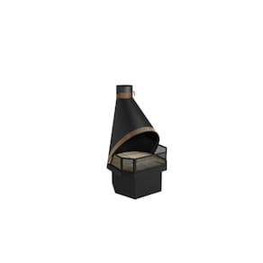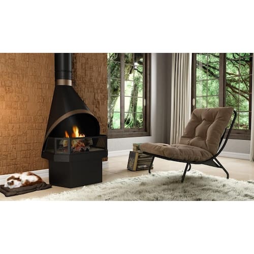 Lareira Suíça Aberta Metávila 694T Preto com Detalhe Dourada