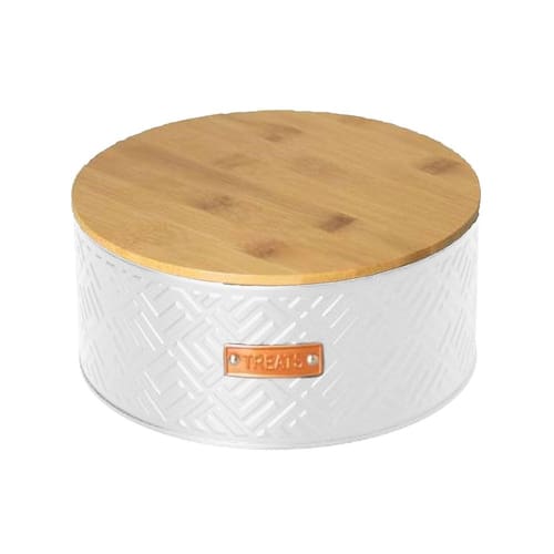 Lata Hermética Porta Biscoito Doce Tampa De Bambu Branco