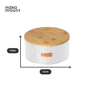 Lata Hermética Porta Biscoito Doce Tampa De Bambu Branco