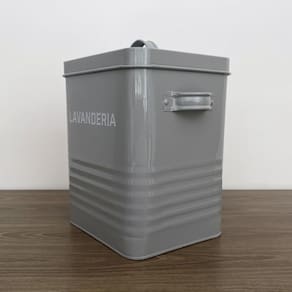 Lata organizadora para lavanderia Cinza é a solução perfeita para manter sua lavanderia organizada e com estilo. Use esta lata para armazenar pó seco como pó de lavagem, tablets, cápsulas, cápsulas e refrigerante de lavagem.