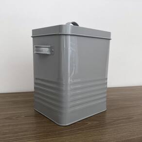 Com um acabamento em cinza, essa lata é perfeita para quem busca uma decoração minimalista e sofisticada.