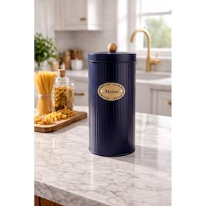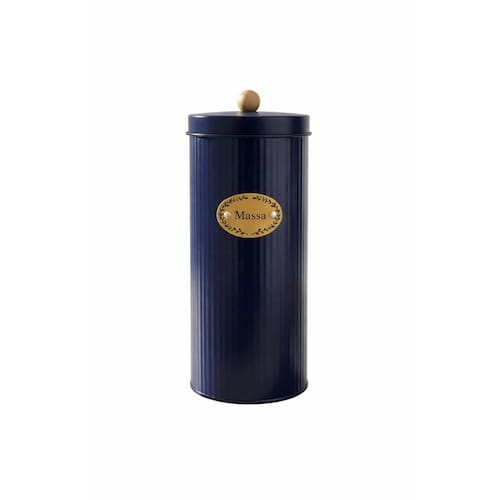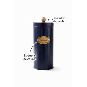 Lata Para Macarrão Com Tampa Hermética Puxador Bambu Azul Marinho -