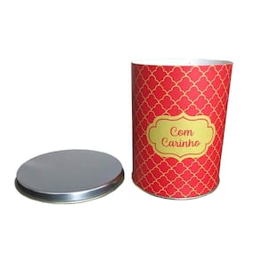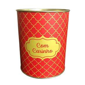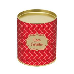 Lata de Presente Elegance Vermelha - CromusO Lata para Presente Vermelha contém uma lata de 9 cm de altura e 11 cm de largura, tendo o tamanho ideal para ser colocado vários bombons, isso mesmo, serve tanto para embalagem para presentes quanto para guardar os ovos em uma embalagem mais agradável e estilosa. Possui a estampa com quadriculado Douradae a escrita Com Carinho na cor dourada também.