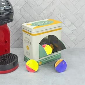 Lata Porta Cápsulas Café Nespresso Dolce Gusto Verde Amarelo Com a Lata Porta Cápsulas de Café você pode armazenar suas cápsulas de café com praticidade e charme. Feita em metal resistente, a lata possui capacidade para até 20 cápsulas e sua tampa facilita o acesso aos seus sabores favoritos. Além disso, seu design moderno e elegante vai dar um toque especial na decoração da sua cozinha. Adquira já a sua Lata Porta Cápsulas de Café e tenha seus cafés organizados e sempre à mão