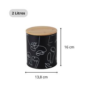 Lata porta condimento line art 2 litros yoi A lata line art além de organizar a sua cozinha/ armário/ bancada, deixando tudo sempre à mão, facilitando o seu dia a dia, ela ainda compõe na decoração da sua cozinha. A lata é produzida em aço carbono, além de ser resistente, ela não deixa cheiro e nem gosto, com um lindo design delicado traçado a mão livre. A tampa possui um anel de silicone, onde torna um fechamento hermético, assim conservando os alimentos frescos por mais tempo. Dimensão: diâm x alt : 13,8 x 16 cm. Capacidade: 2 litros. Material: aço carbono. Cor: preto. : 3 meses.