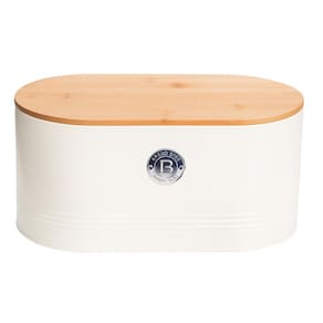 Lata Redonda Porta Pão Com Tampa De Bambu - Creme