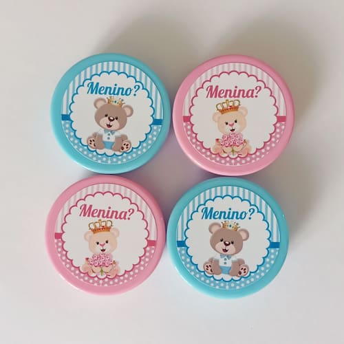 - Pacote com 10 latinhas, sendo 5 Rosa Menina + 5 Azul Menino;