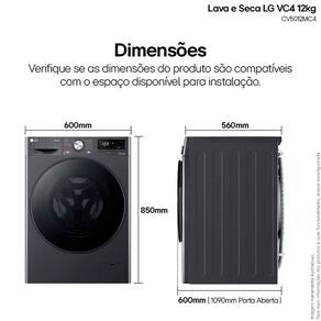 Lava e Seca LG Smart VC4 12kg com Inteligência Artificial AIDD - 220V