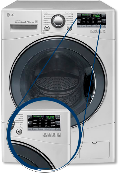 A Lava e Seca da LG disponibiliza o aplicativo Smart Diagnosis, que possibilita o diagnóstico de falhas através de um smartphone. Caso perceba algum problema na máquina de lavar, você deve ligar para o SAC. Então, um especialista vai atender e solicitar que o smartphone seja colocado perto do botão “Ligar”, para assim ocorrer a transmissão de dados. Após esse procedimento, o diagnóstico será realizado, e o atendente fornecerá orientações gratuitamente.