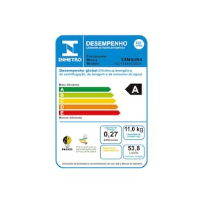 Lava e Seca Samsung WD11A com Ecobubble, capacidade de lavagem de 11kg e secagem de 7kg. Possui tecnologia Ecobubble, ciclo de lavagem a seco para esterilização, lavagem rápida em 15min e ciclo de lavagem e secagem em 59min. Esteriliza a seco removendo odores e 99,9% de bactérias e alérgenos. Motor Digital Inverter.Centrifugação