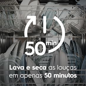 Lava & Seca 50’ garante louças limpas e secas em apenas 50 minutos, sendo ideal para itens pouco sujos. Já o