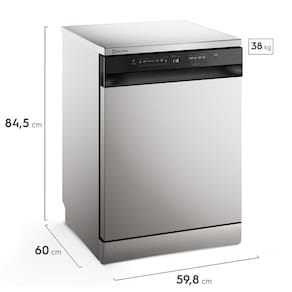 Lava Louças de Piso, 14 Serviços, 7 Programas de Lavagem, Display Digital, 2 Pulverizadores, Trava Painel, Cesto para Talheres, Função Lava e Seca, Função Eco, Função 70C, Adiar Início, Secagem Extra, Delicado, Meia Carga, Pre-lavar, Express 30Programas de lavagem