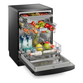 Transforme sua rotina de limpeza com a Lava-Loucas Electrolux LL14P. Projetada para atender ate 14 servicos, esta lava-loucas oferece eficiencia e praticidade, sendo ideal para familias grandes ou para quem gosta de receber convidados. Com um design sofisticado na cor preta, ela se integra perfeitamente a cozinhas modernas, adicionando um toque de elegancia ao ambiente.