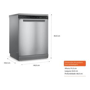 Acabamento em inox, ideal para famílias grandes ou para quem adora receber convidados. Com dimensões de 85x60x59 cm, ela se encaixa perfeitamente em sua bancada, trazendo elegância e eficiência ao ambiente. Equipada com pes de plástico, garante estabilidade e durabilidade. Opera com uma potência de 1183 W, assegurando uma limpeza impecável e rápida. Funcionando em 127V (110V), compatível com a maioria das instalações elétricas residenciais. Estrutura robusta, com peso de 50 kg, proporciona uma operação silenciosa e segura. Ideal para otimizar seu tempo e espaço, garantindo loucas impecáveis com o mínimo esforço. A instalação é simples e pode ser realizada diretamente na bancada da cozinha.Programas de lavagem