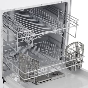 Capacidade para 8 serviços, design compacto, cor branca, pes ajustáveis em plástico resistente, painel intuitivo.Programas de lavagem
