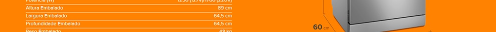 - Display Digital: Painel super fácil de entender. Coloque as suas louças para lavar em poucos cliques e tenha mais tempo para fazer coisas que você realmente gosta! - Higienizar 70ºC: Louças extremamente higienizadas e 99,99% livres de bactérias. *Resultado obtido por Laboratório de Análises Laboratoriais e Soluções em Microbiologia na eliminação de Escherichia coli (UFC), Pseudonomas aeruginosa (UFC) e Staphylococcus aureus, de acordo com as condições de uso indicadas no manual que acompanha o produto. - 14 Serviços: Ideal para família de 4 pessoas. Lava o correspondente até 8 jogos de louça. - O que são os 14 Serviços que cabem nessa lava louça: Itens: 14 pratos de jantar, 14 pratos de sopa, 14 pratos sobremesa, 14 pires, 14 xícaras, 14 copos, 14 garfos, 14 facas, 14 colheres de sopa, 14 colheres de sobremesa, 14 colheres de chá. Total: 56 pratos, 14 xícaras, 14 copos, 70 talheres e 8 extras. - Economia de água: economiza 90% de água versus lavagem à mão. - Economia de água igual a Vitória 14 Serviços: Consumo de água na pia por 15 min*: 117L / Consumo de água lava-louça 14 Serviços**: 12L -> Economia diária em litros: 105L (90%) *15 minutos de torneira aberta por dia lavando na pia (SABESP). ** Um ciclo por dia na máquina, no programa ECO. - 6 Programas personalizados: (Intenso, ECO, Delicado, Normal, Rápido e Acquajet); maior liberdade de escolha de acordo com suas necessidades. - 3 Funções: Extra Seco / Adiar Início / Higienizar 70ºC - Programa Normal: Ideal para lavar as louças no dia a dia. - Programa Intenso: Espaço interno permite lavar grandes volumes como panelas e travessas grandes, eliminando as sujeiras mais difíceis. - Programa Delicado: Ideal para louças pouco sujas e louças delicadas, como taças. - Programa Eco: Combina a melhor lavagem com a melhor economia de água e energia. - Programa Rápido: Ideal para utensílios pouco sujos para quando você estiver com muita pressa ou precisar usar alguma louça em pouco tempo. - Acquajet: Esqueça a pré-lavagem na pia, a máquina tem o programa ideal para isso em poucos minutos. Permitindo a louça ser acumulada ao longo do dia. A função Acquajet realiza um ciclo rápido de lavagem removendo o excesso de sujeira e garante que não haverá odores no interior de sua lava louças caso não queira iniciar o ciclo completo no momento. - Função Extra Seco: Para um melhor resultado de secagem. - Função Adiar Início: A lava louça apresenta a função que possibilita o adiamento do início da lavagem por até 24 horas, conforme suas necessidades. - Início e Pausa: A lava louça tem a tecla de Início/Pausa, que permite você interromper o ciclo sempre que necessário, como por exemplo para adicionar ou retirar um item. - Trava Painel: Garante a segurança para você e sua família. - Indicativo de Líquido Secante: Necessário abastecer o reservatório na primeira lavagem e, quando precisar repor, uma luz acionará no painel indicando a reposição. O líquido secante é importante para a performance de secagem e brilho da louça. Mais Informações: - Frequência (Hz): 60Hz - Acabamento Frontal: Aço Pintado - Acabamento Lateral: Aço Pintado - Acabamento Interno: Aço Inox e Plástico - Temperatura da Água (°C): 70 - Cesto para Talheres - Lava Panelas - Pés Niveladores - Quantidade de Pulverizadores: 2 - Comprimento Máximo da Mangueira: 150cmProgramas de lavagem