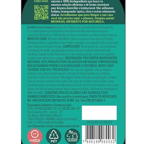 Sobre a Marca: A Biowash é uma empresa brasileira, pioneira no desenvolvimento de produtos de limpeza naturais e 100% Biodegradáveis que busca na natureza soluções eficientes e de fontes renováveis para limpeza domiciliar. Acreditamos que para limpar a sua casa você não precisa sujar o planeta. Biowash, diferente por natureza.