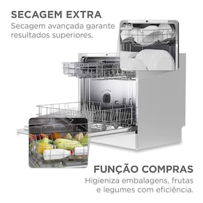 O modelo apresenta funcionalidades que priorizam a funcionalidade, permitindo programar o funcionamento conforme sua conveniência e assegurando que os itens fiquem limpos com total praticidade. Além de poupar esforço, o sistema de filtragem e os jatos de precisão trabalham em conjunto para remover resíduos de forma eficaz, proporcionando higiene e conservação para todo o seu acervo de itens culinários.