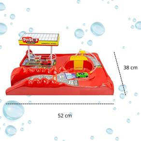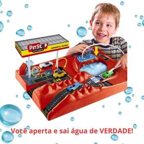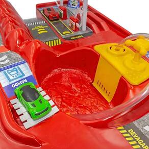 Transforme a brincadeira em uma verdadeira experiência! Com um visual super colorido e detalhes realistas, essa pista oferece tudo o que as crianças adoram: lava rápido com bomba manual de água e jato funcional, posto de combustível com mangueiras para etanol e gasolina, pista com relevo para mais emoção e espaço para os carrinhos aguardarem o abastecimento.