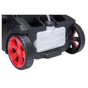 Para sua segurança durante o uso e manuseio do equipamento, ele possui um sistema de segurança com desligamento automático e a pistola com trava de segurança, além de possuir botão de ajuste da alça telescópica, pistola com trava, rodas para transporte e recipiente de detergente.