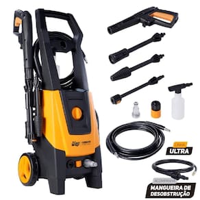 Lavadora alta pressao 2100 psi 1700w 2 em 1, o dobro de vantagens desobstruidora e lavadora de alta pressão com mangueira de desobstrução A desobstruidora de alta pressão wap combate turbo ultra 2600 é a máquina perfeita para limpar sujeiras pesadas e profundas, além de desentupir canos, calhas e tubulações com facilidade utilizando jato de água. A desobstruidora de alta pressão wap combate turbo ultra 2600 é melhor opção para limpar sujeiras pesadas e profundas com rapidez e agilidade, economizando tempo e até 80% de água se comparada à mangueira comum. Com motor de indução, potência de 1700w e pressão máxima de 2100 psi é o equipamento perfeito para a remoção de níveis incrustados de sujeira nos mais diversos tipos de pisos e superfícies. Equipada com alça e rodas que facilitam o transporte, a wap combate turbo ultra 2600 conta com cabo elétrico de 5 metros, mangueira de alta pressão de 5 metros, mangueira desentupidora de 2 metros, trava de segurança da Ferramenta de aplicação, bico regulável leque ou concentrado , aplicador de detergente e o sistema stop total, que corta o fluxo de água e a energia do motor ao soltar o gatilho, poupando energia e aumentando a vida útil do motor. A desobstruidora e lavadora de alta pressão wap combate turbo ultra 2600 conta também com motor de indução, bomba axial com cabeçote de alumínio e pistões em aço inox, conferindo mais durabilidade para o produto. Para tornar ainda mais completo, a máquina vem equipada com o bico turbo que possibilita a limpeza de sujeiras pesadas de forma mais prática e rápida. A desobstruidora wap combate turbo ultra 2600 vem com um porta-acessórios que acomoda Ferramenta de aplicação, baioneta e lança. E, para o trabalho ficar ainda mais fácil e dinâmico, possui engate rápido e filtro, para você montar e desmontar a mangueira em um clique, sem a necessidade de usar ferramentas. Se você procura agilidade e praticidade para o seu dia a dia, não perca mais tempo e garanta já a sua desobstruidora lavadora de alta pressão wap combate turbo ultra 2600. Dados técnicos e logísticos Potência elétrica:1700w Pressão máxima:2100 psi Tensão:127v ou 220v Frequência:60 hz Motor:Indução Vazão:360 l/h Cor:Amarelo com preto Peso líquido:10,8 kg Peso bruto:14,6 kg Dimensões do produto cxlxa :29 x 30 x 76 cm Dimensões da caixa cxlxa :30,5 x 28,5 x 43 cm Cubagem da embalagem:0,0402 m Certificado inmetro:Hous 2362-001-19 :01 ano Acessórios : -1 Ferramenta de aplicação de alta pressão com conexão rápida -1 lança com conexão rápida -1 bico regulável concentrado e leque -1 bico turbo com conexão rápida -1 mangueira de alta pressão com 5 metros de nylon -1 aplicador de detergente com conexão rápida -1 mangueira desentupidora de 2 metros