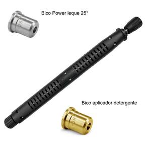 Equipamento: Mangueira de alta pressão em trama de aço, 7.5 m Tubeira de alta pressão Inox Bico Alta Pressão Bico Baixa Pressão (Para aplicação de detergente) Chassi Reforçado com rodas Alça Metallica com Suporte para acessórios.