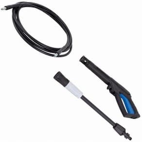 A mangueira de |5 metros| e o cabo elétrico de |5 metros| oferecem ampla mobilidade, permitindo que você limpe grandes áreas sem precisar trocar de tomada ou mover a lavadora com frequência. A ponteira dupla é um destaque à parte, permitindo alternar facilmente entre jato concentrado e leque de água de até |60°|, ideal para cobrir áreas maiores sem esforço.