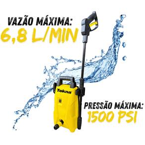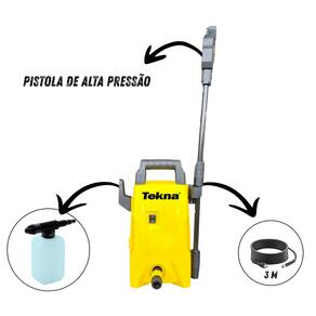 A Lavadora de alta pressão TEKNA conta com 1400 watts de potência e pressão máxima de 1500 PSI. Compacta e leve, tem apenas 40 cm de altura, facilitando o seu transporte.