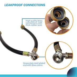 - Vedação firme, sem conexão de vazamento: acessórios de latão de alta qualidade com juntas de borracha em ambas as extremidades fêmeas garantem uma conexão perfeita à prova de vazamentos. Mangueira resistente de 0,9 cm de espessura, feita de borracha EPDM trançada reforçada com poliéster, não conduz eletricidade e não enferruja
