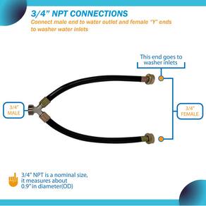 - Para lavadora e máquina de lavar louça: a mangueira de mistura "Y" permite que a máquina de lavar ou máquina de lavar louça funcione normalmente quando apenas água fria está disponível, conectando as entradas de água fria e quente a um suprimento de água