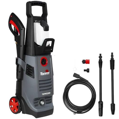 A Lavadora Elétrica de Alta Pressão Toyama TEPW2200I adequada para uso frequente em superfícies sujas. Equipada com um motor de indução de 1800W de potência que proporciona uma pressão máxima 2030 PSI (140 bar) e uma vazão máxima de 6,5 l/min.