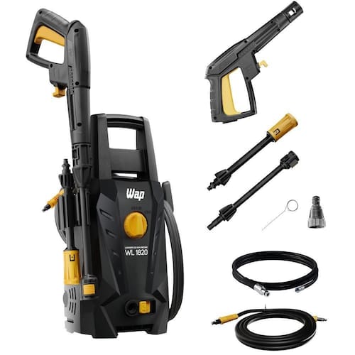 Produto: Lavadora de alta pressão Desentupidora 1.500 libras - WL 1820 Black Ultra Marca: Wap Voltagem: 220VDescrição: Otimize o tempo na hora de realizar a limpeza em locais difíceis com a Lavadora de alta pressão Desentupidora 1.500 libras WL 1820 Black Ultra da WAP. Com pressão de 1500 PSI, vazão de 330L/h e potência de 1400W, a máquina proporciona resultados impecáveis ao desentupir canos, calhas e tubulações utilizando a mangueira ULTRA, com jatos de água precisos. Líder entre os equipamentos essenciais para a limpeza ágil, a lavadora de alta pressão é eficiente na limpeza de superfícies internas, externas, veículos e móveis. Além disso, proporciona até 80% de economia no consumo de água em comparação com métodos convencionais de higiene. O poder de transformar até as tarefas mais desafiadoras em atividades simples e rápidas no seu dia a dia é possível com um conjunto completo de acessórios. A Ferramenta de aplicação de alta pressão proporciona controle preciso, e a baioneta funciona como um extensor da Ferramenta de aplicação, garantindo segurança durante a utilização do produto. Remova sujeiras difíceis sem esfrega-esfrega O bico regulável permite ajustar o tipo de jato para concentrado ou leque. A mangueira de alta pressão, com três metros, oferece amplo alcance e flexibilidade durante a limpeza. A WL 1820 Black Ultra acompanha uma mangueira desentupidora de dois metros e engate rápido para simplificar as desconexões. Simplifique sua rotina de organização com os suportes exclusivos para acessórios da lavadora, que facilitam a movimentação pela área de limpeza. O sistema eletrônico “Stop Total” interrompe a distribuição de água ao soltar o gatilho, protegendo o usuário e prolongando a vida útil da máquina. A combinação perfeita de potência e praticidade, a Lavadora de alta pressão Desentupidora 1.500 libras WL 1820 Black Ultra está pronta para enfrentar desafios de limpeza com ainda mais eficiência.Especificações: Potência: 1400WCor: Preto e AmareloMaterial: Polímeros e metaisClasse de Isolação: IIÍndice de Proteção: IPX5Frequência: 60 HzCertificado Inmetro: SimComprimento do Cabo Elétrico: 5 metrosPressão Máxima: 1500 PSI 103 BAR Vazão Máxima: 5 l/m 330 L/h Nível de Ruído Sonoro: 92 db A Bico com Jato Regulável: SimComprimento da Mangueira: 3 metrosTipo de Mangueira: NylonTipo de Conexão: Eng. Rápidotipo de Bomba: AxialTipo de Motor: UniversalTipo de Filtro: Entrada de água Componentes: Motor com enrolamento de alumínioBomba com motor AxialInterruptorAlça para TransportePorta Acessórios.Itens Inclusos: Bico Ajustável,Mangueira de alta pressão 3 metros,Mangueira Desentupidora 2 metros,Engate Rápido,Agulha desobstruidora. Marca: Não Informado