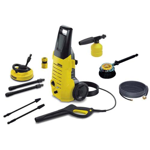 A lavadora de pressão Kärcher permite limpar de tudo, pois vem com 8 acessórios que facilitam o seu trabalho na remoção das sujeiras. Possui pistola, mangueira, tubeira leque, tubeira turbo - indicada para eliminar as sujeiras resistentes - desentupidor de tubulações, aplicador de detergente, bocal de engate rápido, escova rotativa e T-Racer T50.