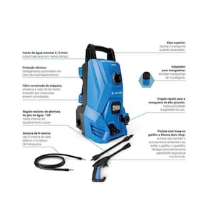 A segurança também é prioridade. O gatilho com sistema Auto Stop evita desperdício de energia e água, enquanto a trava de segurança previne acionamentos acidentais. O protetor térmico cuida da Lavadora de Alta Pressão PLP2200, desligando-a automaticamente em caso de superaquecimento.