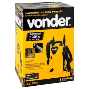 Lavadora de Alta Pressão Vonder LAV1300 1200W A Lavadora de Alta Pressão Vonder LAV 1300 é a escolha ideal para quem busca praticidade e eficiência na limpeza de áreas externas, veículos, pisos e diversas superfícies. Com um estilo compacto e fácil de manusear, o equipamento alia potência e economia de água, proporcionando um jato de alta pressão que remove sujeiras difíceis com rapidez. Seu motor universal garante desempenho confiável, enquanto sua estrutura foi projetada para oferecer durabilidade no uso doméstico. Confira mais detalhes: