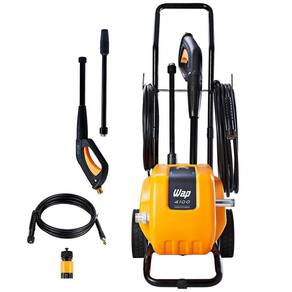 A wap 4100 é o mais novo lançamento da linha profissional de lavadoras de alta pressão wap. Uma maquina compacta, durável, robusta e super prática para carregar na caixa de transporte de motocicletas, possui motor de indução e não necessita de nenhuma instalação elétrica especial, basta ligar na tomada e pronto, a máquina está pronta para o uso. Possui um exclusivo porta acessórios, que ajuda na organização do produto para guardar, mangueira de alta pressão de 7,5m além da bomba axial com cabeçote em alumínio, pistões em aço inox e potência de até 2,2 kw e vazão de 500l/h, o que garante maior poder de arrasto da sujeira. Uma excelente maquina para ser utilizado em pequenos negócios como mercadinhos, frutarias, açougues e também em condomínios. Com a wap 4100 você pode chegar muito mais longe. Potência elétrica: 1. 5 kw