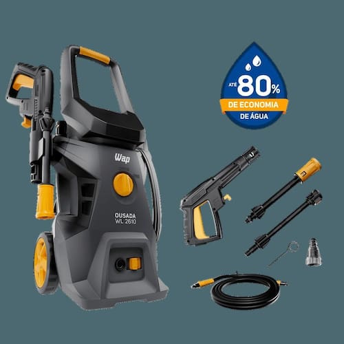 Lavadora De Alta Pressão Wap Ousada Wl 2610 Cor Cinza Voltagem: 220V Poder de Desempenho Inigualável Com uma potência impressionante de 1500W, essa Lavadora de Alta Pressão é capaz de lidar com os bloqueios mais difíceis. Seu motor robusto, construído com polímeros e metais de alta qualidade, garante durabilidade e eficácia em cada uso. Versatilidade de Uso Equipada com uma variedade de acessórios, como o bico ajustável e a mangueira desentupidora de 2 metros, ela oferece a flexibilidade necessária para lidar com diferentes tipos de obstruções. Além disso, o cabo elétrico de 5 metros proporciona mobilidade durante o uso. Segurança e Confiabilidade Com certificação INMETRO e classe de isolamento II, a Lavadora de Alta Pressão oferece mais confiança durante o uso. Seu índice de proteção IPX5 garante resistência à água para você ter tranquilidade durante sua utilização. Prático e Eficiente Equipada com um bico com jato regulável, oferece controle total sobre a pressão e o fluxo de água. A mangueira de nylon de 3 metros proporciona alcance extra, permitindo que você alcance até os locais mais difíceis de desobstruir. Ficha técnica: Marca: Wap Modelo: Ousada WL 2610 Ultra Cor: Cinza e amarelo Voltagem: 127V ou 220V Escolher no momento da compra Potência elétrica: 1500W Pressão máxima: 1750 PSI Vazão: 342 L/h Motor: Universal Tamanho da mangueira: 3 m Tipo da mangueira: Mangueira de nylon Comprimento cabo elétrico: 5 m Classe de isolação: II Frequência: 60 Hz Classe de proteção: IPX5 Nível de ruído: 92 db A Tipo de conexão: Engate rápido Tipo de bomba: Axial Tipo de filtro: Filtro de entrada de água Temperatura máx. Entrada de água: 50C Peso bruto: 7,5 kg Peso líquido: 6,2 kg : : 01 ANO 3 meses de legal e mais 9 meses de especial concedida pelo fabricante Dimensões da caixa C x L x A : 34 x 26,5 x 41,3 cm Dimensões do produto C x L x A : 32,9 x 26,2 x 70 cm Acessórios: Bico ajustável; Mangueira 3m; Mangueira Desentupidora: 2m; Cabo elétrico 5m; Engate rápido; Agulha desobstruidora Componentes: Motor com enrolamento de alumínio; Bomba com motor axial; ; Alça para transporte; Porta acessórios Ean: 7899831312573