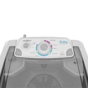 -Capacidade de lavagem: 20,6Kg -7 Programas de lavagem – para diferentes tipos de roupa e níveis de sujeira -Ciclo tira manchas – ideal para roupas encardidas -Função Timer -Função Dreno -Desligamento automático -Tampa transparente -Painel fácil de usar -Dispenser duplo – sabão e amaciante -Sistema de filtragem de fiapos