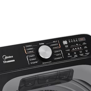 A Lavadora Midea Wave Agitator oferece capacidade de 13kg, abertura superior, cesto em aço inox, painel mecânico com display LED, timer e trava eletrônica. Conta com 13 programas (Brancas, Coloridas, Rápido 20, Algodão, Sintético, Super ECO, Tênis, Delicado/lã, Cama e banho, Edredom, Jeans, Tira-manchas e Limpeza do tambor) e 10 funções: Avançar etapa, níveis de água e sujeira (extra alto/alto/médio/baixo), Turbo, Perfume+, Reuso de água, Enxágue+, Centrifugação+, Silenciar e Travar Painel de Controle.