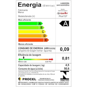 Se busca praticidade e eficiência para o seu dia a dia, conheça a Lavadora de Roupas Semiautomática Plus, da Mueller, e se surpreenda! Com capacidade para lavar até 4,5 kg de roupa, possui timer manual com 4 programas que indicam as peças adequadas e o tempo de lavagem. O sistema de lavagem por agitação é muito eficiente na lavagem de roupas muito sujas. Além de tudo isso, a máquina tem uma peneira para pequenos objetos, possui classificação A pela Inmetro e consome menos energia, o que afirma seu desempenho superior!