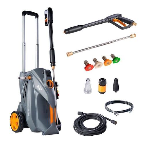Produto: Lavadora de alta pressão desentupidora 2300 libras - 5100 Turbo Ultra Marca: Wap Voltagem: 220VDescrição: A Lavadora de alta pressão desentupidora 2300 libras 5100 Turbo Ultra da Wap é a melhor opção para limpar sujeiras pesadas e profundas de grandes áreas com rapidez e agilidade, além de desentupir canos, calhas e tubulações com facilidade utilizando jato de água. Com motor de indução, vazão máxima de até 550 L/h, bico turbo, potência de até 2500W e pressão máxima de até 2300 libras, é o equipamento de uso frequente perfeito para a remoção de níveis incrustados de sujeira nos mais diversos tipos de pisos e superfícies. É uma máquina compacta, durável, robusta e super prática para transportar com alças de alumínio retrátil e emborrachada. A WAP 5100 Turbo ULTRA cabe, inclusive, na caixa de transporte de motocicletas. Possui um exclusivo porta-acessórios que ajuda na organização dos componentes do produto e rodas que facilitam o transporte. A WAP 5100 Turbo ULTRA conta com uma bomba axial com cabeçote de alumínio e pistões em aço inox, que garantem mais durabilidade ao produto. Além disso, vem com cabo elétrico de 5 metros, mangueira desentupidora de 2 metros e mangueira de alta pressão com trama de aço de 10 metros que permitem cobrir uma grande área sem precisar locomover a máquina. Equipado com gatilho com trava de segurança, bicos de 15, 25 e 40 além do sistema stop total, que corta o fluxo de água e a energia do motor ao soltar o gatilho, poupando energia e aumentando a vida útil do motor. E, para o trabalho ficar ainda mais fácil e dinâmico, vem equipada com o engate rápido e filtro, para você montar e desmontar a mangueira em um clique, sem a necessidade de usar ferramentas. A Lavadora de Alta Pressão Desentupidora WAP 5100 Turbo ULTRA é uma excelente máquina para ser Utilizado em empreendimentos como: pequenos mercados, padarias, restaurantes, frutarias, açougues e condomínios. Com a WAP 5100 Turbo ULTRA você pode chegar muito mais longe. Características principais: – 2 em 1, o Dobro de Vantagens Lavadora de Alta Pressão Desentupidora com Mangueira de Desobstrução; • Máquina compacta e robusta, garanta rapidez e agilidade na limpeza de sujeiras pesadas e profundas de grandes áreas. • a WAP 5100 Turbo ULTRA é perfeita para lavar, limpar e desentupir tubulações, ralos, privadas, pias de cozinha, calhas, drenos de máquinas de lavar roupas, lava-louças e muito mais. • Mangueira Desentupidora de 2 metros: A Lavadora WAP 5100 Turbo ULTRA acompanha exclusiva Mangueira de Desobstrução por Jato de Água. Mangueira resistente, flexível e durável, que facilita o trabalho de desentupimento, como um profissional; • Excelente máquina para ser Utilizado em empreendimentos como: pequenos mercados, padarias, restaurantes, frutarias, açougues e condomínios.Especificações: Potência elétrica: 2500 wPressão máxima: 2300 psiFrequência: 60 hzClasse de isolação: 1Cabo elétrico: 5 metrosMangueira: 10 metros de trama de açoBico turbo: SimShampoozeira: NãoMotor: InduçãoVazão: 550 l/hFrequência: 60hzCor: Cinza com amarelo. Bomba axial com cabeçote de alumínio. Componentes:pistões de aço inox.Cabo elétrico de 5 metros.Sistema Stop Total.Gatilho com trava de segurança.Filtro de água.Espigão para conexão da mangueira.2 Rodas para transporte.Alça ergonômica retrátil e emborrachada.Botão liga e desliga ergonômico e de fácil acesso.Suporte para acessórios. Bomba axial com cabeçote de aluminio.Pistões em aço inox.Cabo elétrico de 5 metros.Porta-acessórios.Alça para transporte.2 Rodas para transporte.Filtro de entrada de água.Suporte de mangueira e cabo elétrico.Sistema Stop Total.Itens Inclusos: 1 Ferramenta de aplicação de alta pressão com conexão de rosca M22.1 Lança de inox com conexão rápida em latão.4 Bicos com conexão rápida 0, 15, 25 e 40 .1 Bico Turbo com conexão rápida.1 Mangueira de alta pressão com 10 m de trama de aço.1 Mangueira desentupidora de 2 metros.