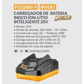 Lavadora de alta pressão ingco à bateria íon-lítio 20v Características: Tensão: 20v Pressão máxima: 24,8 bar 360 psi Taxa de fluxo: 2,2l / min Sistema de parada automática 1 bateria 4.0ah 1 carregador de baterias bivolt 1 conjunto de Ferramenta de aplicação de pulverização de 6 padrões 1 mangueira de entrada de água de 6 m com conector rápido 1 conector de auto-sucção 1 aplicador de detergente e 400ml 1 bolsa portátil Embalado em caixa de papelão Quanto maior a amperagem da bateria intercambiável ingco maior é o tempo de trabalho da lavadora sem a necessidade de troca ou recarga da bateria. Temos kit com baterias de 2.0; 4.0; 5.0; 6.0 e 7.5 amperes. Marca: Não Informado