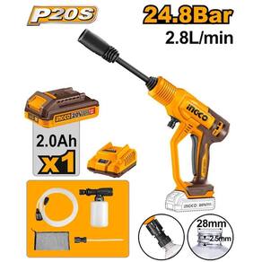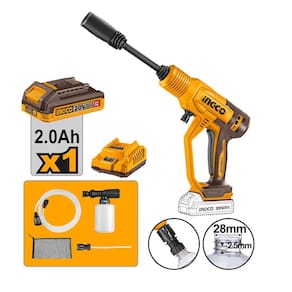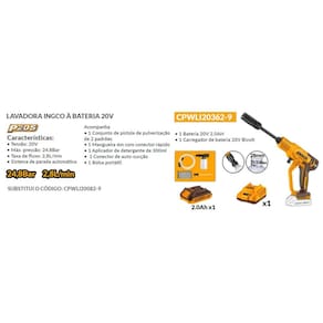 Lavadora de alta pressão ingco à bateria íon-lítio 20v Referencia: cpwli20362-9 Características: Tensão: 20v Pressão máxima: 24,8 bar 360 psi Taxa de fluxo: 2,8l / min Sistema de parada automática 1 bateria 2.0ah 1 carregador de baterias bivolt: 1h 2.0ah ou 2h 4.0ah bivolt 1 conjunto de Ferramenta de aplicação de pulverização de 6 padrões 1 mangueira de entrada de água de 6 m com conector rápido 1 conector de auto-sucção 1 aplicador de detergente e 300ml 1 bolsa portátil Embalado em caixa de papelão Marca: Não Informado