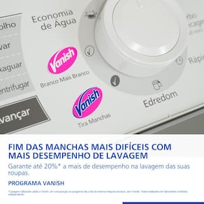Desenvolvida para facilitar sua rotina, esta máquina conta com o exclusivo Programa Vanish, que potencializa a ação do tira-manchas e entrega resultados 20% superiores. Além disso, a tecnologia Smartsense utiliza sensores inteligentes para ajustar o nível de água automaticamente, garantindo que você economize recursos em cada ciclo.