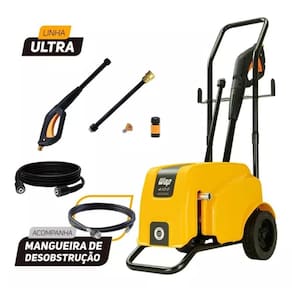 A Desobstruidora e Lavadora de Alta Pressão WAP 2200 220V Profissional é a melhor opção para limpar sujeiras pesadas e profundas de grandes áreas com rapidez e agilidade. Com motor de indução, vazão máxima de até 420 L/h, potência de até 1500W e pressão máxima de até 1650 PSI, é o equipamento de uso frequente perfeito para a remoção de níveis incrustados de sujeira nos mais diversos tipos de pisos e superfícies. É uma máquina compacta, durável, robusta e super prática para transportar. Ela cabe, inclusive, na caixa de transporte de motocicletas. Possui um exclusivo porta-acessórios que ajuda na organização dos componentes do produto e rodas emborrachadas, antiderrapantes, que não riscam o piso e facilitam o transporte. A lavadora de alta pressão WAP 4100 ULTRA conta com uma bomba axial com cabeçote em alumínio e pistões em aço inox que garantem mais durabilidade ao produto. Além disso, vem com cabo elétrico de 5 metros, mangueira desentupidora de 2 metros e mangueira de alta pressão de 7,5 metros que permitem cobrir uma grande área sem precisar locomover a máquina. Vem com trava de segurança da , bico leque 15° e o sistema stop total, que corta o fluxo de água e a energia do motor ao soltar o gatilho, poupando energia e aumentando a vida útil do motor. A lavadora de alta pressão WAP 4100 ULTRA é uma excelente máquina para ser usada em pequenos negócios, como: mercadinhos, padarias, restaurantes, frutarias, açougues e também em condomínios. Com a WAP 4100 ULTRA você pode chegar muito mais longe. Wap tem que ser da WAP!VOLTAGEM: 220V MOTOR: Indução POTÊNCIA: 2200W PRESSÃO MÁXIMA: 2000 PSI VAZÃO: 500 L/h FREQUÊNCIA: 60 Hz CLASSE DE ISOLAÇÃO: 1 CABO ELÉTRICO: 5 m MANGUEIRA: 7,5 m MANGUEIRA DESENTUPIDORA: SIMACESSÓRIOS 1 de alta pressão com trava de segurança. 1 Lança com engate rápido. 1 Bico leque 15°. 1 Mangueira de alta pressão com 7,5 metros. 1 Mangueira desentupidora de 2 metros. 1 Engate rápido. 1 Agulha de limpeza para bico.COMPONENTES Bomba axial com cabeçote de alumínio. Pistões em aço inox. Cabo elétrico de 5 metros. Suporte para acessórios. 2 Rodas de borracha para transporte. Alça removível para transporte. Sistema Stop Total.
