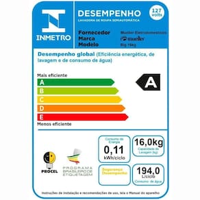 - Consumo de energia - ciclo de lavagem normal: 0,11 kW/h