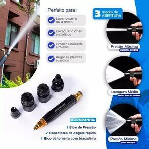 Lavadora Vap Bico Mangueira Alta Pressão: Desempenho que Supera Expectativas O bico Ferramenta de aplicação só funcionará de forma eficiente se a pressão da agua na torneira for de moderada a alta, se a pressão da agua for fraca, o bico não fará a função de jato que é o que se deseja. Ferramenta de aplicação de pulverização de alta pressão feita de liga de alumínio ajustável, Ferramenta de aplicação de água para jardins, gramados, irrigação vegetal, lavagem de carros e limpeza de motos e bicicletas, super indicado para a lavagem de calçadas , pois a pressão tira a maioria da sujeira de forma bem rápida. ESPECIFICAÇÕES: - Pulverizador multifunção: feito de liga de alumínio de alta qualidade, muito mais leve do que o pulverizador de bicos de latão e não é fácil pegar ferrugem. - Padrões para necessidades de pulverização: pode se lavar pisos manchados duros e sujos ou regar flores e plantas, este bocal tem fluxo de água constante podendo ser ajustado girando o bocal. - Fácil de usar: o punho do bocal é projetado com padrão de rosca, a superfície é lisa sem rebarbas, e a fricção é aumentada, por isso é conveniente para segurar. - A prova de vazamento: o anel de borracha de alta qualidade e o bocal rosqueado estão perfeitamente conectados para garantir o desempenho da selagem e as exigências de pulverização do grande fluxo de água. - Aplicação: adequado para lavagem de carro, regar flores, limpeza de vidro, pisos etc. As braçadeiras de fixação são adequadas para fixação de mangueiras, tubos de água, tubos de vinil, tubos de aço, etc. CARACTERÍSTICAS: - Material: Liga de Alumínio. - Comprimento: 16.7cm/6.6in. - Diâmetro do conector: 1.1cm/0.4in. ITENS NO PACOTE: - 1 Bico . - 2 Conectores de engate rápido. - 1 Bico de torneira com braçadeira. Marca: Não Informado