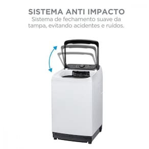 Compacta, mas com alta capacidade, oferece mais conveniencia e desempenho. Alem disso, o Sistema Anti-Impacto assegura o fechamento suave e silencioso da tampa, evitando acidentes, ruidos e prolongando a durabilidade da maquina.