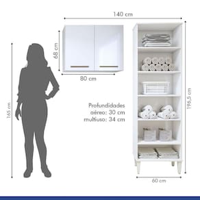 Mantenha sua area de servico organizada com nosso conjunto Belem! Perfeito para otimizar o espaco, oferecendo armazenamento eficiente para seus utensilios e produtos de limpeza. O armario multiuso e ideal para acomodar itens maiores, enquanto o armario aereo aproveita o espaco vertical, garantindo mais praticidade. Fabricados com materiais de qualidade, eles sao resistentes e duraveis, perfeitos para o uso diario. Transforme sua area de servico com estilo e funcionalidade!